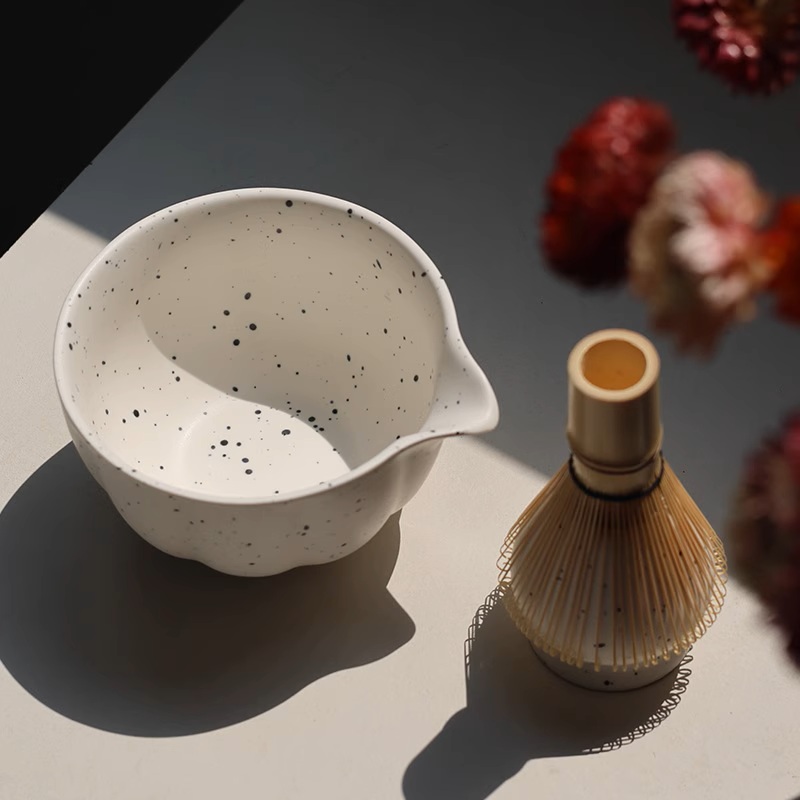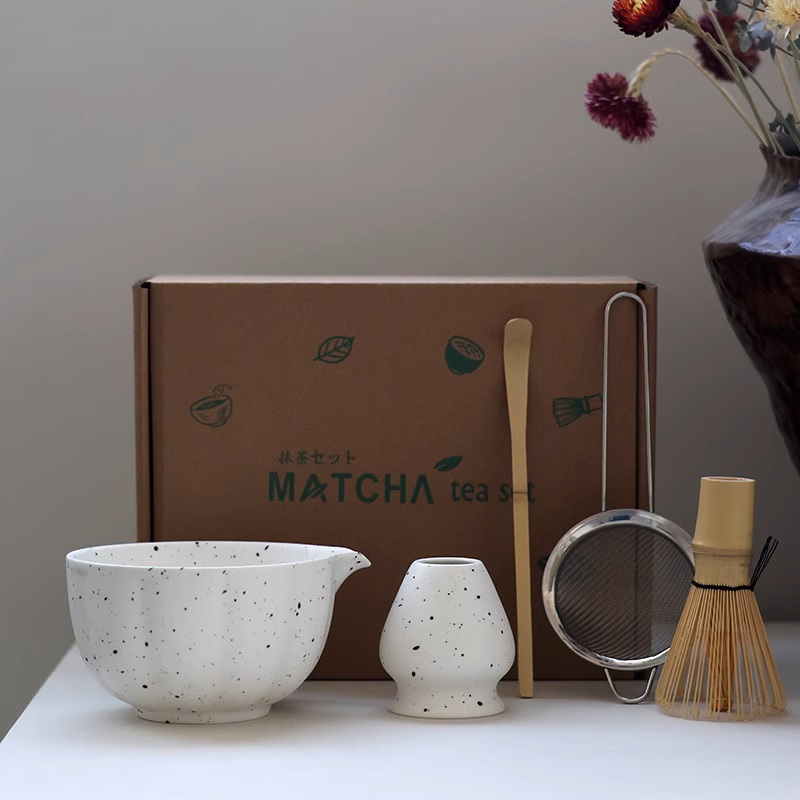 전통과 현대가 조화를 이룬 세련된 말차 다도 세트.