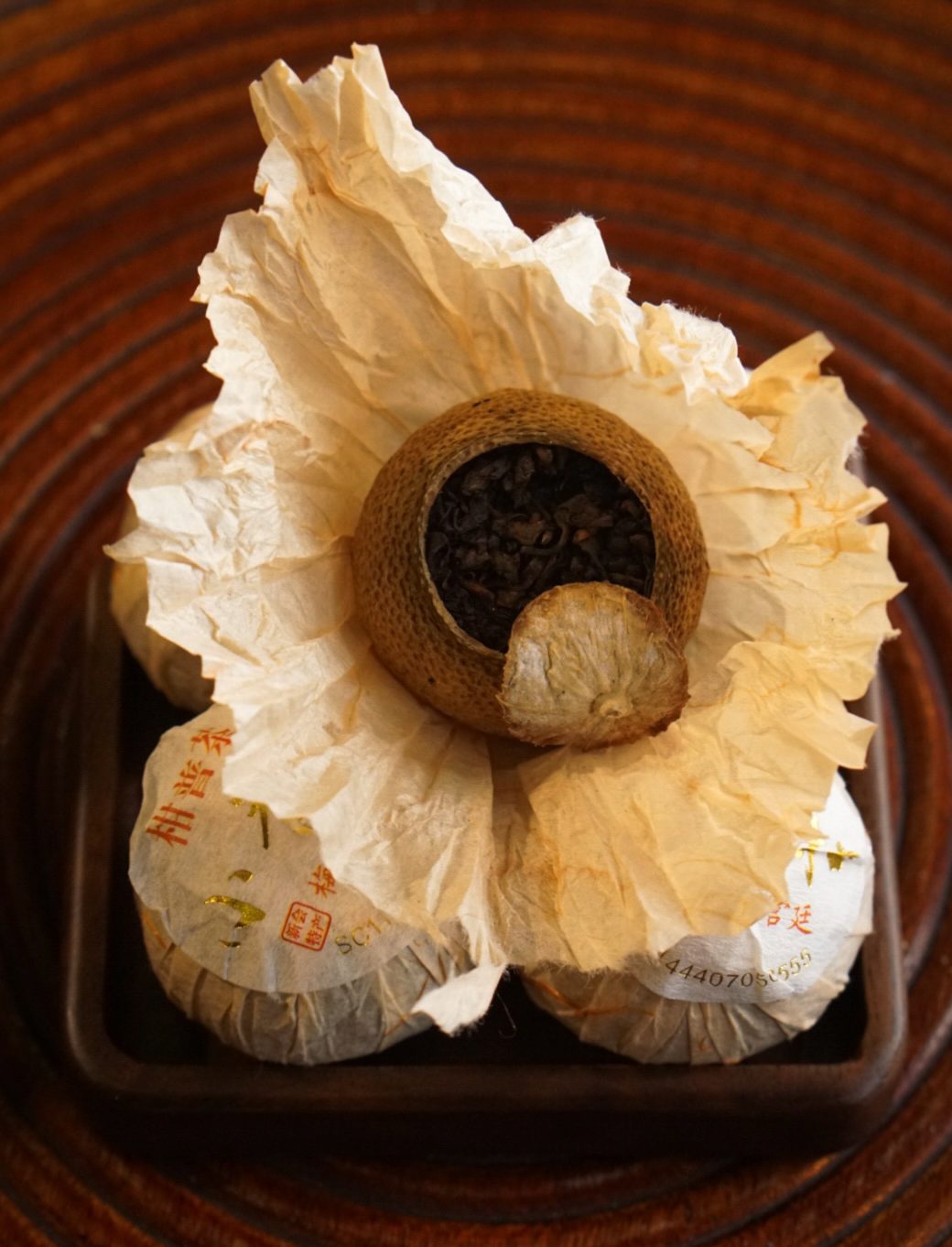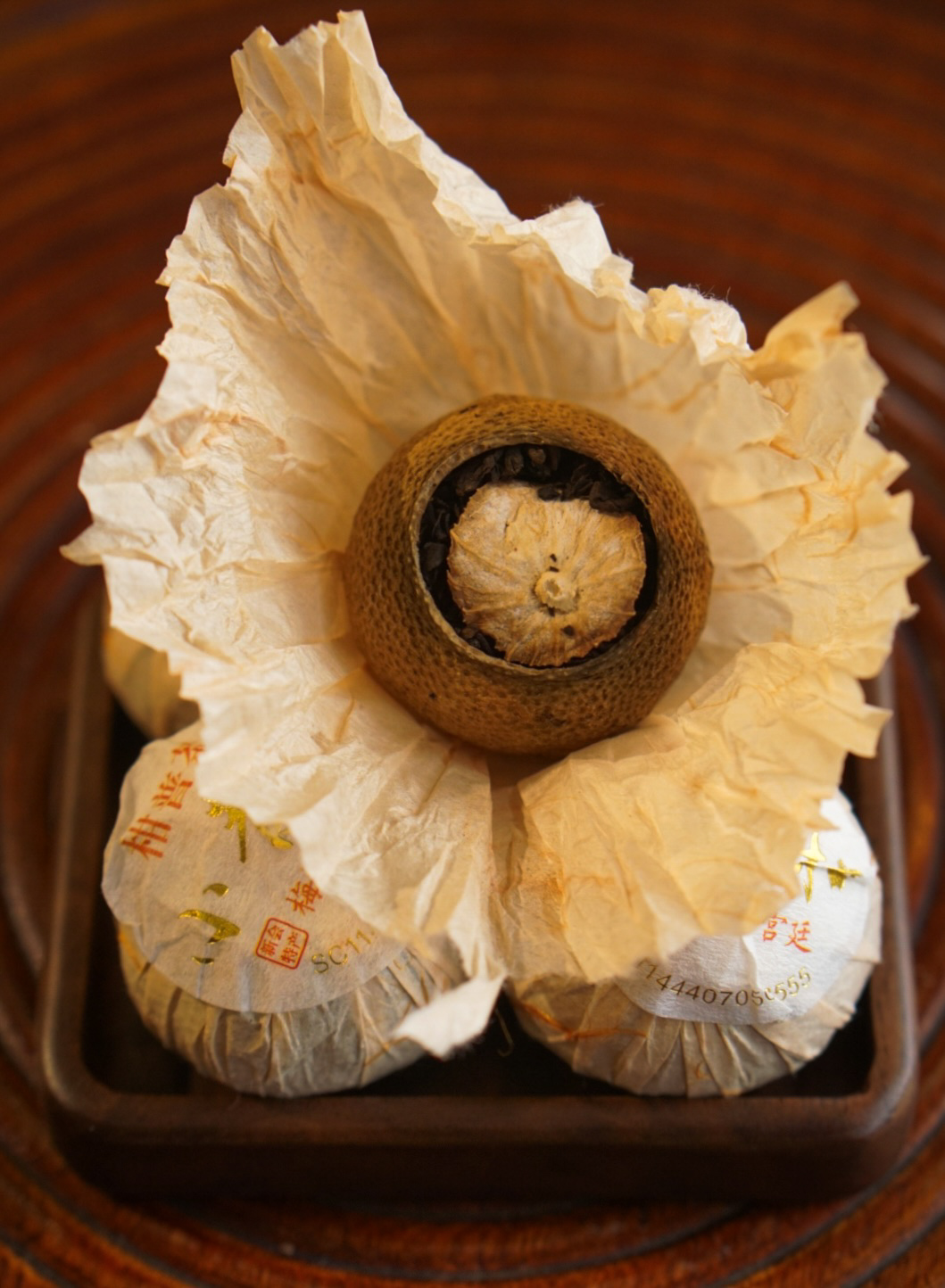 그 안에 궁정 보이숙차를 넣어 햇빛에 말린 차입니다.